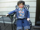 These early John Turner figures are becoming harder and harder to find today. This one is all original from the 1940's except for the replaced wig. He is 42" tall and has the following functions. Slot jaw moving mouth, side to side moving eyes, left eye winks and raising eyebrows. The paint is all original on him and other than a few cracks and chips he is in fantastic condition.